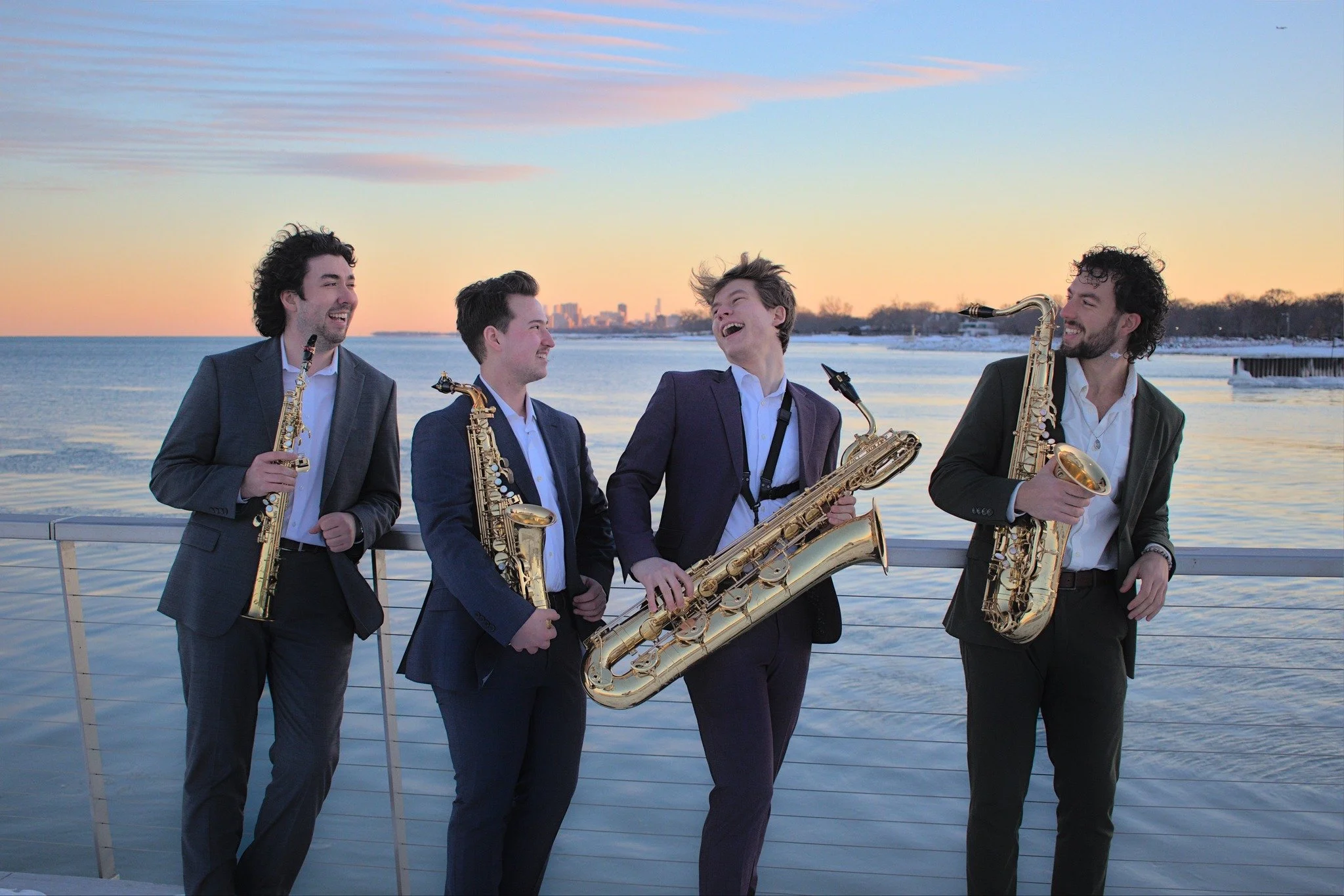 Synchrony Quartet is comprised of Philip Kleutgens (soprano saxophone), Hudson O’Reilly (alto saxophone), Matthew Johnson (tenor saxophone), and Haven Kahn (baritone saxophone).